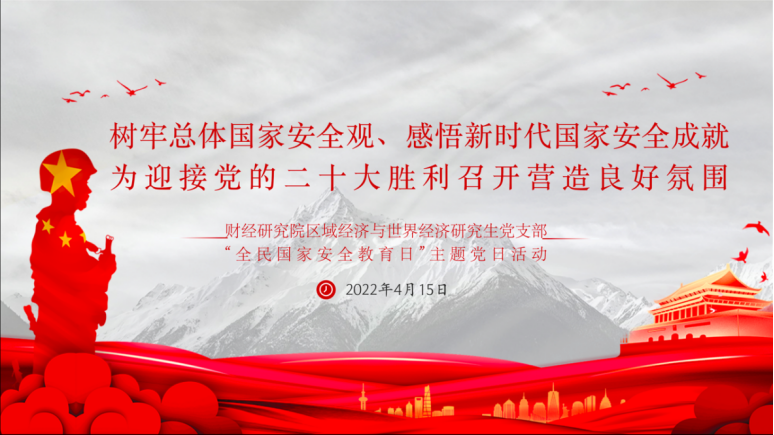 2022年4月15日,韦德体育官方网站區域經濟與世界經濟研究生黨支部舉行“全民國家安全教育日“主題黨日活動。本次活動圍繞“樹牢總體國家安全觀,感悟新時代國家安全成就,為迎接黨的二十大勝利召開營造良好氛圍”主題開展,會議由支部組織委員薛婧軒同志主持。